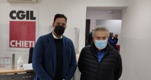 (Presso la Cgil di Chieti tra i tanti il deputato abruzzese di ‘Italia Viva’ Camillo D’Alessandro insieme a Gigino Borrelli presidente provinciale ANPI)