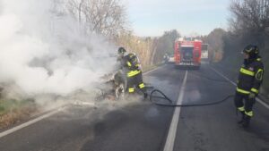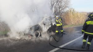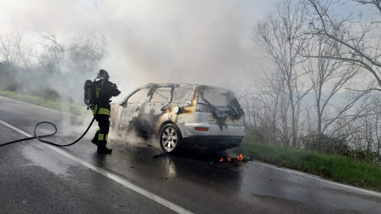 Auto a fuoco nel pomeriggio di oggi, sulla strada provinciale 1b, tra Ancarano e la strada provinciale 1 della Bonifica del Tronto. Sul posto è intervenuta una squadra dei vigili del fuoco del distaccamento di Nereto, giunta sul posto con un’autopompa e un fuoristrada con modulo antincendio. E’ intervenuta anche una pattuglia dei carabinieri di Sant’Egidio alla Vibrata per gli adempimenti di competenza.