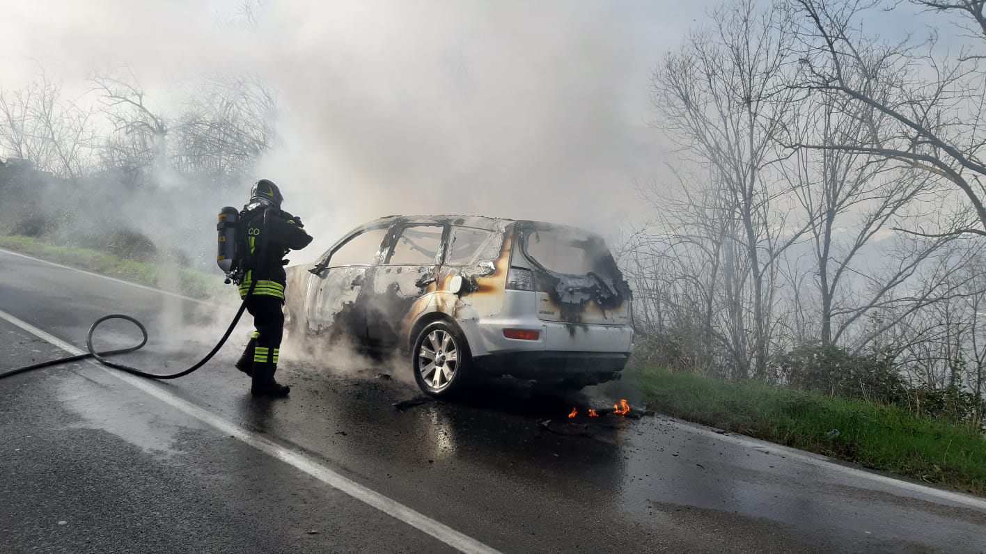Le fiamme si sono sviluppate nella parte anteriore di una Mitsubishi Outlander e successivamente hanno avvolto completamente il veicolo. Il conducente dell’auto, un 57enne della provincia di Ascoli Piceno, ha accostato il mezzo a bordo strada dopo che sul cruscotto si è accesa una spia indicante un’avaria ed essersi accorto che nell’abitacolo ha iniziato a svilupparsi del fumo.