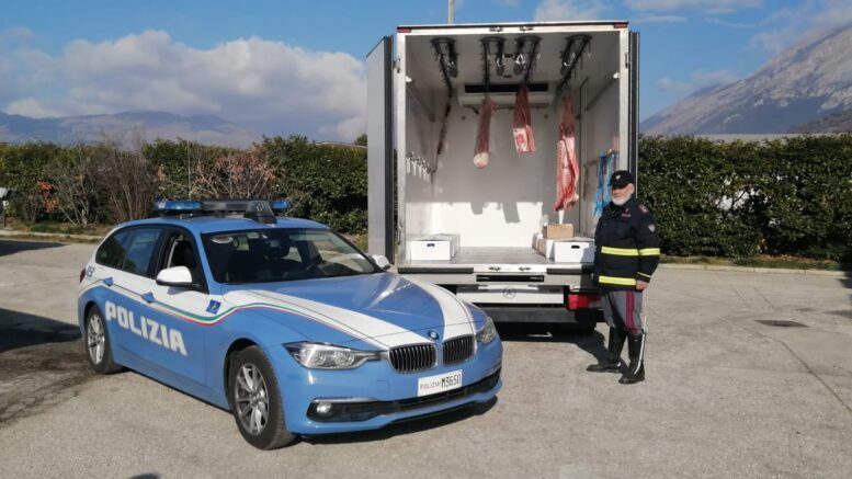 Durante i controlli autostradali della Polizia di Avezzano, in collaborazione con il servizio igiene degli alimenti della ASL1, scoperta carne da kebab trasportata in mondo non idoneo