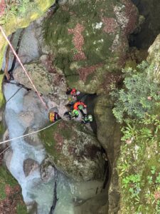 Una squadra specializzata nel soccorso in forra del Corpo Nazionale Soccorso Alpino e Speleologico è riuscita a raggiungere, attraverso un accesso laterale, il punto in cui giovedì erano state ancorate le barelle con i corpi dei due escursionisti.