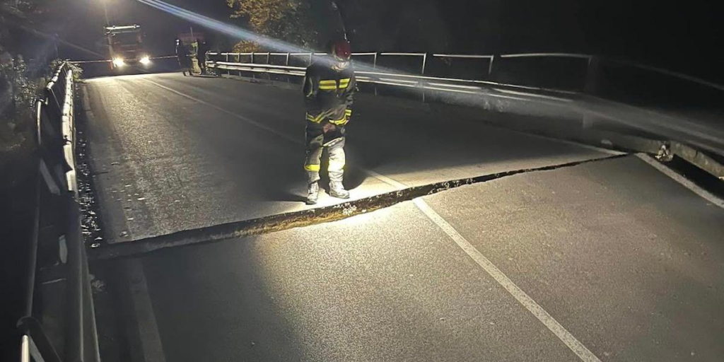 Sfiorata la tragedia intorno alle 23 di giovedì lungo la SP12 “di Collerenti”, per l’improvviso cedimento di una spalla del ponte che sovrasta il torrente Salinello, nei pressi dell’incrocio con la SP8 della Bonifica del Salinello. A dare l’allarme alcuni automobilisti, che fortunatamente si sono fermati in tempo prima di attraversare il ponte, che si è abbassato vertiginosamente per il cedimento della carreggiata. Sul posto sono accorse le squadre dei vigili del fuoco del distaccamento di Nereto che assieme Stradale e agli addetti della Provincia di Teramo hanno presidiato e inibito l’accesso all’area posizionando dei Jersey in cemento. Sul posto anche il presidente della Provincia, Diego Di Bonaventura. Lo scorso anno, a seguito di interventi di consolidamento, il manufatto era stato riaperto al traffico con la prescrizione del traffico vietato ai mezzi pesanti.