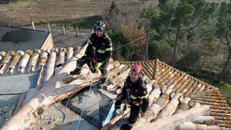 Si è concluso stasera l’intervento per l’incendio in autocombustione nel tiburio della chiesa di Santa Croce e Santa Maria della Misericordia a Bellante paese