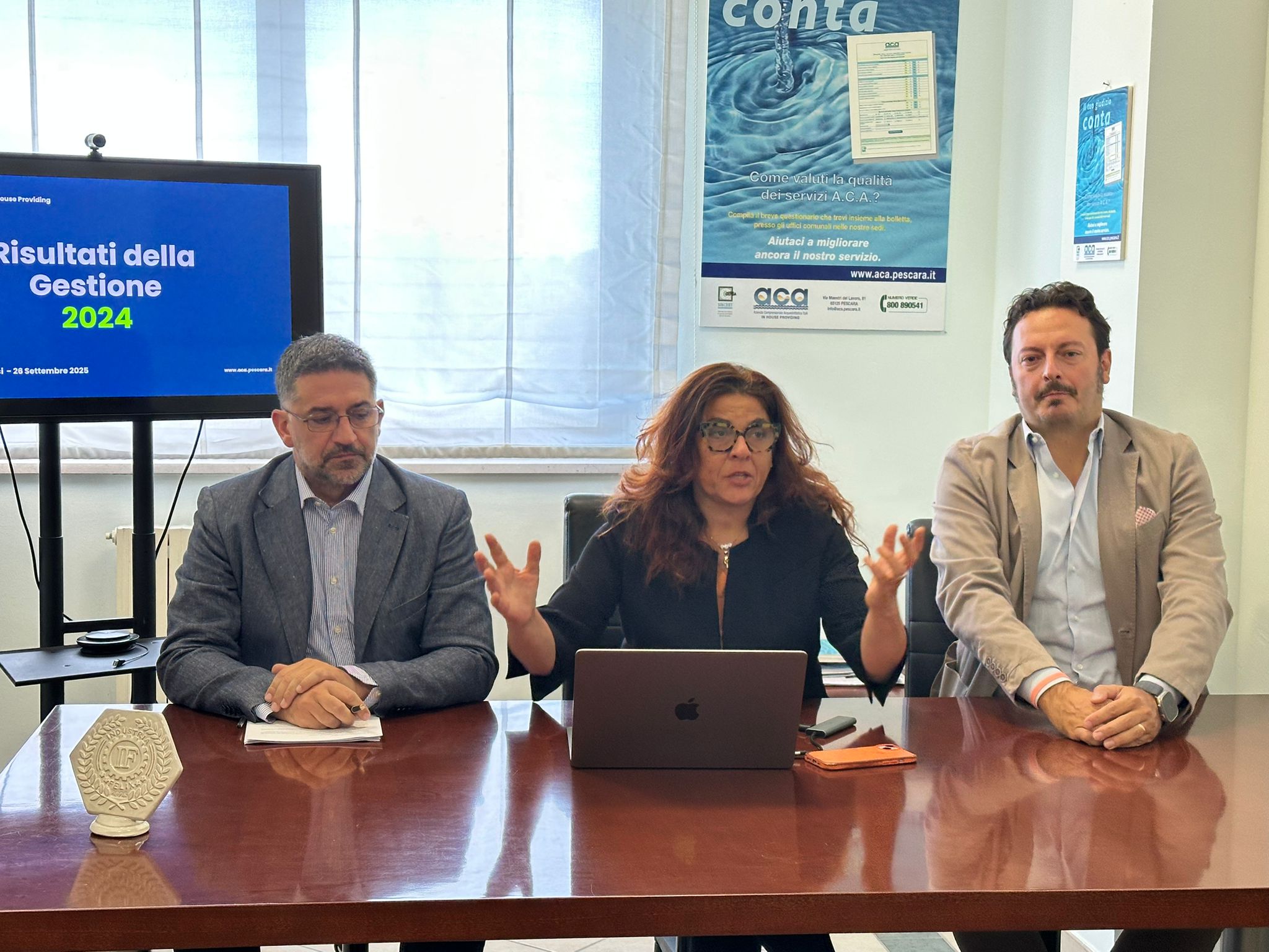Questa mattina è stato illustrato il bilancio consuntivo di esercizio 2024 dell’Aca del corso di una conferenza stampa alla quale hanno partecipato la presidente Giovanna Brandelli, il consigliere Pierpaolo Canzano e il direttore generale Marco Santedicola. L’Assemblea dei Sindaci soci dell’ACA ieri ha approvato all’unanimità il Bilancio consuntivo di esercizio 2024, che evidenzia ricavi per 80 milioni di euro, spese per 72 milioni, di cui 19 milioni destinati a investimenti infrastrutturali, e quasi 4 milioni versati come rimborso ai Soci ante 2013. La posizione finanziaria netta è cresciuta da 12 a 16 milioni di euro, confermando la solidità della gestione. Il 2024 è stato un anno cruciale, che ha messo in luce la qualità della governance sia sul piano amministrativo sia su quello tecnico. Qualità amministrativa: l’ACA ha conseguito i migliori risultati di sempre, ottenuto il premio Sole 24 Ore – Industria Felix, avviato rapporti bancari strategici e sottoscritto un mutuo BEI per interventi di messa in sicurezza delle infrastrutture idriche e incremento della resilienza climatica. Qualità tecnica.