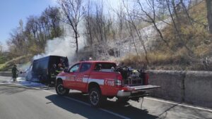 Appena ricevuta la chiamata di soccorso, la sala operativa 115 di Teramo ha inviato sul posto una squadra con un’autopompa e un’autobotte, con cui è stata effettuata l’azione di spegnimento dopo aver tagliato le lamiere del mezzo con la cesoia idraulica. I vigili del fuoco hanno spento anche le fiamme che si sono estese alle sterpaglie presenti lungo la vicina scarpata e hanno provveduto a mettere in sicurezza il mezzo incendiato, successivamente recuperato da un carro attrezzi giunto sul posto. Sul luogo dell’incendio è interventa anche una pattuglia della Polizia Locale di Bisenti per gli adempimenti di competenza.