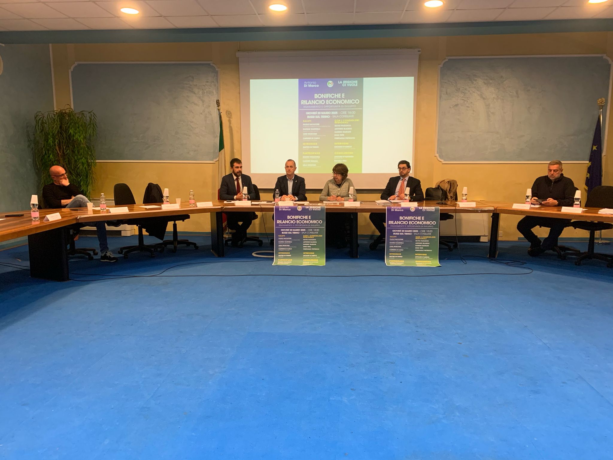 Sala consiliare gremita a Bussi per l’incontro ‘Bonifiche e rilancio economico, risanamento e opportunità di sviluppo’, dedicato alla bonifica dei territori interessati dalla discarica di Bussi. L’iniziativa è stata curata dal consigliere regionale PD Antonio Di Marco, vicepresidente della Commissione Ambiente e territorio del Consiglio regionale. Presenti i segretari regionale e provinciale del PD, Daniele Marinelli e Carmen Ranalli, il capogruppo provinciale PD Gianni Chiacchia, l’avvocato Matteo Di Tonno, già legale della Provincia di Pescara, il capogruppo PD in consiglio regionale Silvio Paolucci, i consiglieri Sandro Mariani, a capo della Commissione Vigilanza, e Pierpaolo Pietrucci, l’onorevole Luciano D’Alfonso.