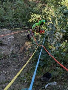 L’intervento si è svolto sulla parete della scarpata e tutte le operazioni sono state condotte con il personale appeso in manovra. Le attività di recupero si sono rivelate particolarmente complesse e impegnative a causa delle condizioni ambientali.