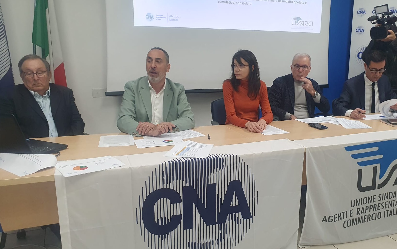 Cna Fita di Abruzzo e Marche, insieme a Usarci, Unione sindacati agenti e rappresentanti commercio italiani regionale, hanno provato a testare con un sondaggio gli umori di questa importante platea di operatori professionali: a rispondere sono stati oltre 300 utenti, un campione tutt’altro che irrilevante, che chiede ora a gran voce a quanti decidono sull’assetto di quei cantieri “interventi di pianificazione più efficaci e misure correttive che garantiscano sicurezza, continuità e sostenibilità operativa”, soprattutto in ragione del fatto che non si può ragionevolmente più parlare di “lavori in corso ma di una condizione permanente di circolazione ridotta”. Stato dell’arte che fa dire a ben l’86% degli intervistati come l’impatto della gestione dei cantieri sul trasporto delle merci navighi in un acque negative (pessima gestione per il 67%). Impatto che è negativo anche sotto il profilo comunicativo, sempre a detta degli intervistati, per “mancanza di comunicazione chiara e in tempo reale” con informazioni aggiornate su chiusure, deviazioni, durata lavori, avvisi via app, pannelli stradali o canali digitali: “Siamo gli ultimi a sapere cosa succede e quanto durerà.” I risultati del sondaggio sono stati illustrati questa mattina a Pescara nel corso di una conferenza stampa nella sede della Cna Abruzzo, cui prendono parte il presidente e il direttore regionale di Cna Abruzzo, Bernardo Sofia e Silvio Calice; Riccardo Colazilli e Raffaella Pierangelo di Cna Fita Abruzzo; Vincenzo Verì, Carlo Di Cintio e Vincenzo Troisi, rispettivamente vicepresidente, segretario e tesoriere di Usarci Abruzzo. E vediamo allora a qualcuno dei dati più significativi del sondaggio, che si traduce in un vero e proprio cahiers de doléances da parte degli intervistati. Intanto, sui piano strutturale, il sondaggio non indica un solo punto critico sulla cartina geografica, ma sottolinea come il problema esista lungo l’intera tratta, in una sorta di corridoio senza soluzione di continuità: al più, con un’indicazione sul tratto più compromesso (da Pescara Nord a Giulianova), e senza significativi miglioramenti nel territorio marchigiano.