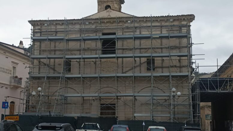 La chiesa parrocchiale di Santa Maria della Pace di Capestrano al centro del paese è chiusa da 16 anni, dal terremoto del 2009. I fedeli continuano a chiederne la riapertura.