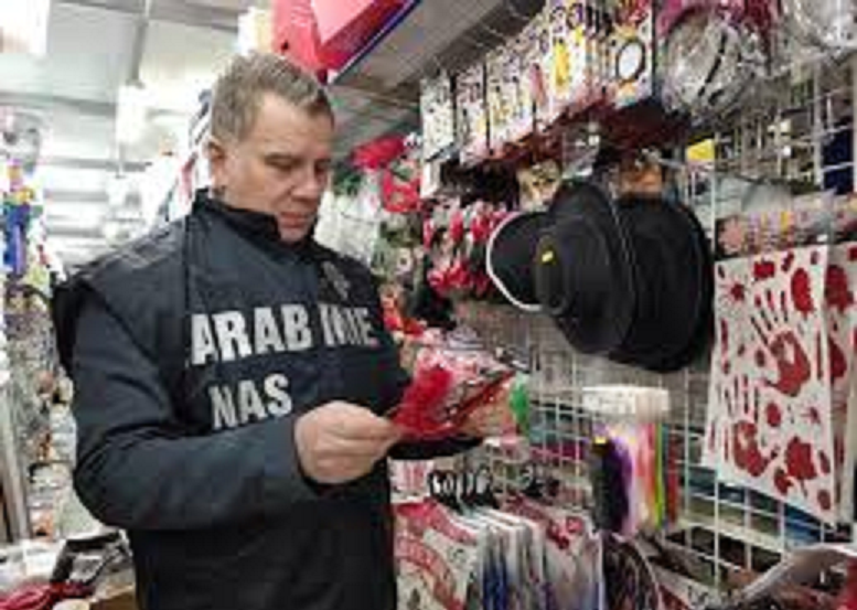 Il NAS di Pescara ha sequestrato amministrativamente merce tipica della ricorrenza carnevalesca per un valore di 1500 euro. A tale provvedimento, i militari del capoluogo abruzzese sono giunti dopo aver accertato, presso un esercizio gestito da una persona di nazionalità cinese, la vendita di 150 confezioni di abiti, maschere, giocattoli e prodotti elettrici sprovvisti delle indicazioni minime di sicurezza e delle informazioni in lingua italiana.