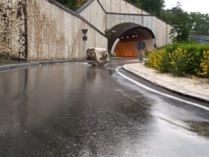 Le foto che vi mostriamo rendono perfettamente l’idea delle dimensioni del masso piombato sulla strada, poco dopo le 16.30. Un masso enorme che difficilmente avrebbe lasciato indenne un’auto di passaggio.