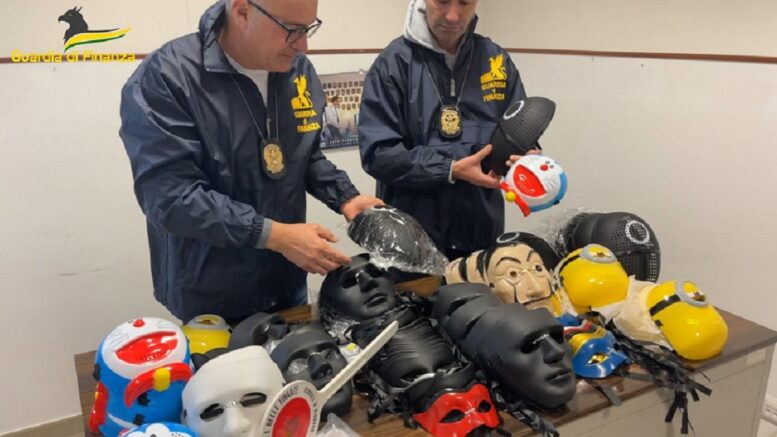 Oltre 402 mila maschere e accessori di carnevale contraffatti made in China, senza etichettature di sicurezza, né avvertenze in lingua italiana, sono stati sequestrati dai finanzieri del Comando provinciale del capoluogo adriatico presso esercizi commerciali gestiti da una rete di imprenditori cinesi, già con precedenti per frode in commercio e attivi nella distribuzione di merce lungo la “diagonale del falso”, tra i poli opposti di Pescara e Napoli.