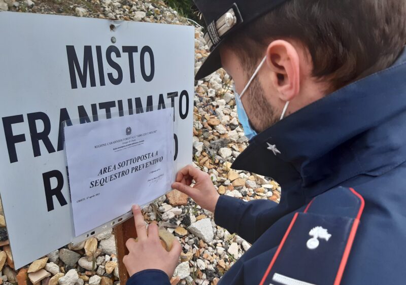 In attesa dell’ultimazione dei lavori relativi al progetto presentato alla Regione Abruzzo, l’area è stata adibita allo stoccaggio ed al trattamento di ingenti quantitativi di rifiuti a ridosso di una ex cava, in assenza del prescritto titolo abilitativo. Il valore dei beni sottoposti al vincolo reale può essere stimato in circa € 250.000,00. Indagato il titolare di un’impresa edile, al quale è stato contestato l’art. 256 comma 1 del Codice dell’ambiente, che prevede la pena dell’arresto da tre mesi a un anno o l’ammenda da duemilaseicento euro a ventiseimila euro per chiunque effettua una attività di raccolta, trasporto, recupero, smaltimento, commercio ed intermediazione di rifiuti in mancanza della prescritta autorizzazione.