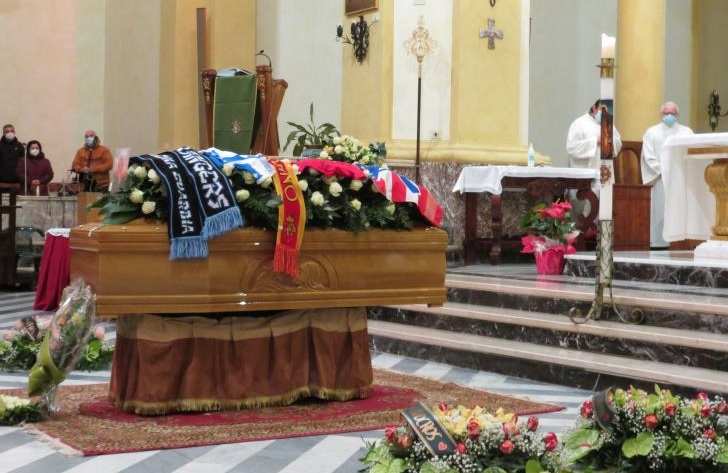Tra i tanti presenti anche i rappresentanti delle Società del Casalbordino Calcio, del Pescara e della Vastese. Sul feretro disposte le sciarpe delle sue squadre del cuore, ma anche striscioni del tifo organizzato, posti all’ingresso della chiesa. Tantissimi i messaggi di cordoglio e di affetto postati sui profili socia.