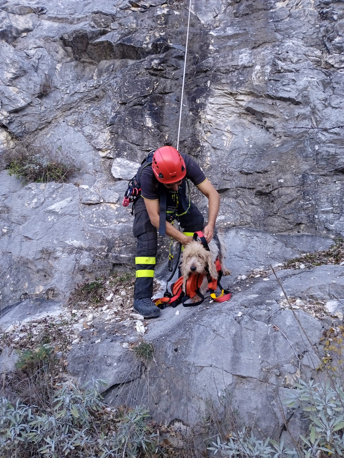 Il cane da caccia era precipitato seguendo probabilmente le tracce di un animale selvatico. Per il recupero, avvenuto in un’area inaccessibile con altri mezzi, sono state necessarie manovre Saf (Speleo-Alpino-Fluviale). I soccorritori hanno raggiunto l’animale calandosi dall’alto e, dopo averlo ristorato con dell’acqua e del cibo, con il cane assicurato all’operatore, hanno continuato la discesa con le corde per oltre centocinquanta metri, dove, in buone condizioni, è stato affidato all’incredulo proprietario.