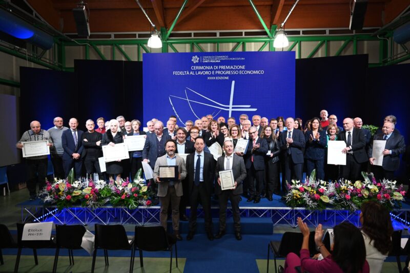 Dopo il conferimento dei premi ai 59 lavoratrici e lavoratori, è stato invece il turno delle imprese longeve e dei premi speciali alla chirurga pediatrica Mariagrazia Andriani ed al presidente dell’associazione Pro emigranti abruzzesi Giovanni Pretoro.