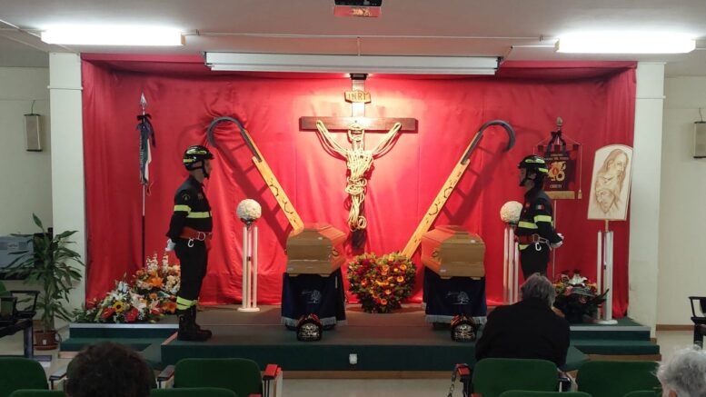 I funerali solenni si tengono oggi alle 16.00 nella cattedrale di San Giustino. La parte dell’abside è riservata a familiari e autorità, gli altri posti a tutti coloro che vogliono essere presenti. A celebrare il rito funebre è l’arcivescovo Bruno Forte, presente anche il capo del Corpo nazionale dei Vigili del Fuoco, Eros Mannino. A Chieti e Guardiagrele, città di provenienza delle due vittime, per oggi è stato proclamato il lutto cittadino.