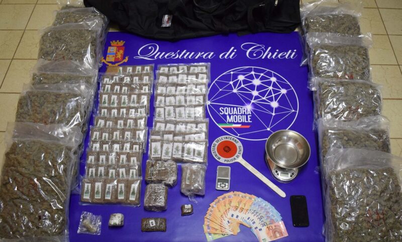 Gli agenti della Squadra Mobile di Chieti hanno arrestato un 49enne per detenzione ai fini di spaccio di sostanza stupefacente. L’uomo è stato trovato in possesso di 25 kg di hashish e marijuana.