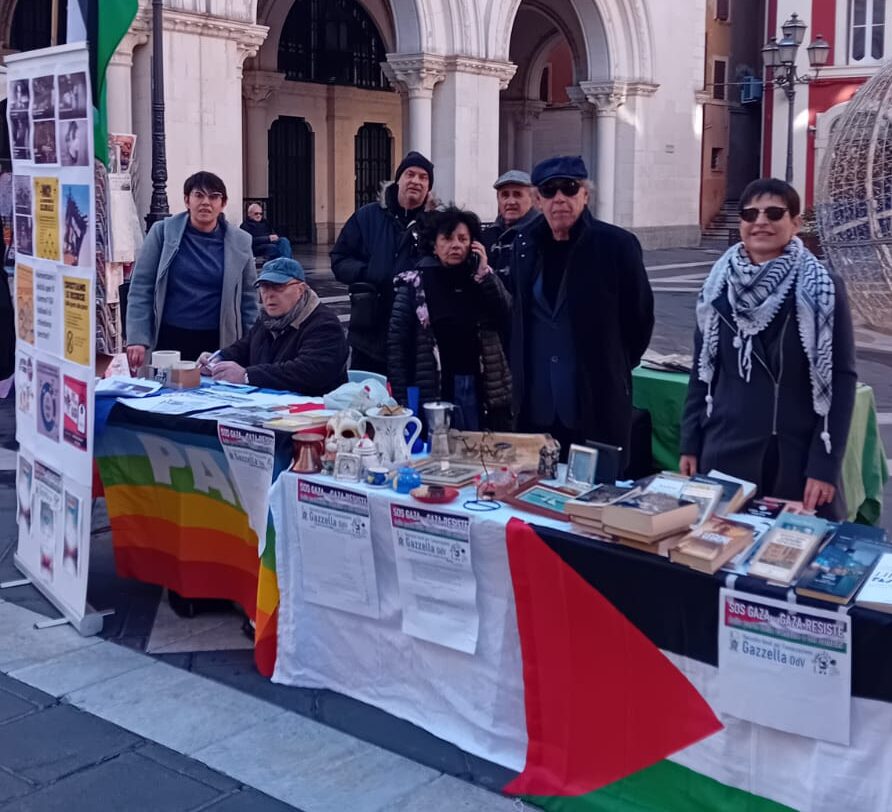 Durante il presidio, che durerà fino alle 19, viene anche promossa l’attività della onlus Gazzella che fornisce assistenza a bambini palestinesi feriti da armi da guerra e supporto umanitario alla popolazione di Gaza.