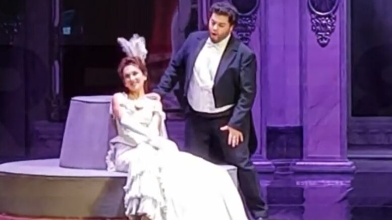 Sul palco del Marrucino ieri sera l’opera lirica in tre atti del grande compositore italiano ha inaugurato la nuova stagione teatrale ai tempi della pandemia, dopo la lunga chiusura dettata dall’emergenza sanitaria. Con Green pass, mascherine e distanziamento (ancora per poco, però, perché da lunedì 11 ottobre teatri e cinema in zona bianca torneranno fruibili al 100% della propria capienza per chi sarà in possesso del certificato verde, dopo il via libera del consiglio dei Ministri), un pubblico emozionato, con politici, imprenditori e rappresentanti delle istituzioni in platea, ha preso posto per assistere all’ultimo dramma della cosiddetta trilogia popolare verdiana, La Traviata, tratta dal romanzo La signora delle camelie di Alexandre Dumas, composta nel 1853 da Giuseppe Verdi su libretto di Francesco Maria Piave e portata in scena ieri sera a Chieti con il nuovo allestimento del Teatro Marrucino su regia di Riccardo Canessa. Protagonista della serata è stato Daniel Oren, il grande maestro concertatore e direttore israeliano, che ha magistralmente guidato l’Orchestra sinfonica abruzzese. A dar voce ed emozione all’intramontabile dramma di Violetta Valery è stato il soprano Maria Mudryak; interprete di Alfredo Germont il tenore Azer Zada, mentre il baritono Massimo Cavalletti ha vestito i panni di Giorgio Germont. Tra gli interpreti anche il soprano pescarese Licia Piermatteo nei panni di Annina, serva di Violetta, e le voci del coro del Marrucino, dirette dal maestro Christian Starinieri, a completare gli inconfondibili quadri scenici di Alfredo Troisi, come quello del primo atto del celebre Libiamo ne’ lieti calici e il coro delle zingare e dei mattadori del secondo atto, dove a calcare la scena è stato anche l’etoile Giuseppe Picone.