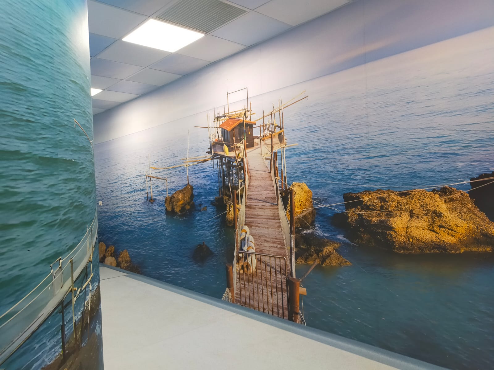 La scelta di decorare le due principali sale di trattamento radioterapico, come Trabocco e Maiella, vuole essere infatti anche un omaggio alla terra d’Abruzzo che vanta il privilegio di poter godere contemporaneamente delle splendide cornici naturalistiche di mare e monti che la caratterizzano.