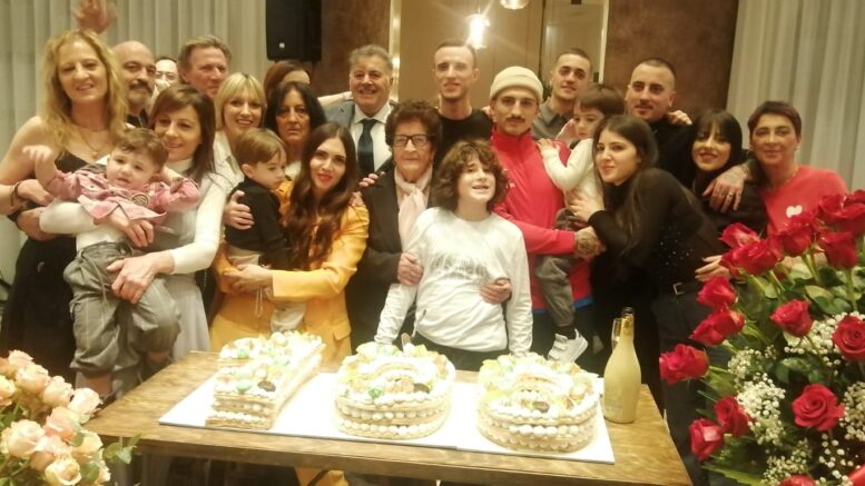 Festeggiata a Chieti dove vive, ma alla presenza anche del sindaco di Lettomanoppello dove è nata, Concetta Ferrante. Grande festa al “New Gilda” alla presenza di parenti e amici e dei sindaci di Chieti Diego Ferrara e Simone Romano D’Alfonso. Per Concetta tre figlie, 7 nipoti e ben sei pronipoti, ma anche trisavola di Antonio, Enea e Cristiano.
