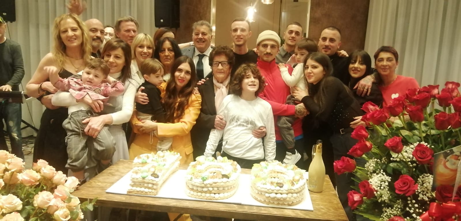Festeggiata a Chieti dove vive, ma alla presenza anche del sindaco di Lettomanoppello dove è nata, Concetta Ferrante. Grande festa al “New Gilda” alla presenza di parenti e amici e dei sindaci di Chieti Diego Ferrara e Simone Romano D’Alfonso. Per Concetta tre figlie, 7 nipoti e ben sei pronipoti, ma anche trisavola di Antonio, Enea e Cristiano.