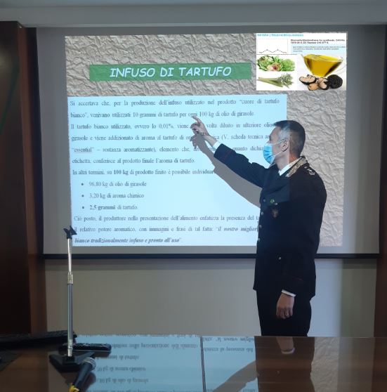 Alcuni prodotti riportavano tra gli ingredienti un non meglio definito “infuso di tartufo”, ottenuto mediante l’immersione di risibili quantitativi di tartufo in oli extravergine di oliva o di semi, cui viene appositamente aggiunto l’aroma di sintesi per ottenere il gusto del fungo ipogeo. Al contrario, in etichetta o nei siti internet delle aziende, veniva dichiarata la presenza di tartufo, enfatizzandola con immagini, fino a specificarne la provenienza geografica.