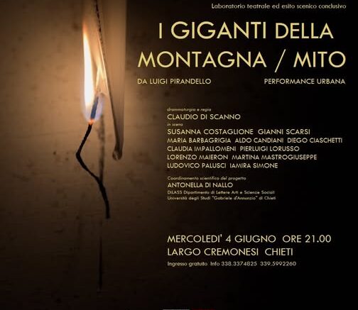 “I Giganti della Montagna / Mito” sarà una performance urbana, ispirata a Luigi Pirandello, che si terrà a Chieti in Largo Cremonesi alle 21:00 del 4 giugno 2020, esito finale del laboratorio teatrale diretto da Claudio Di Scanno