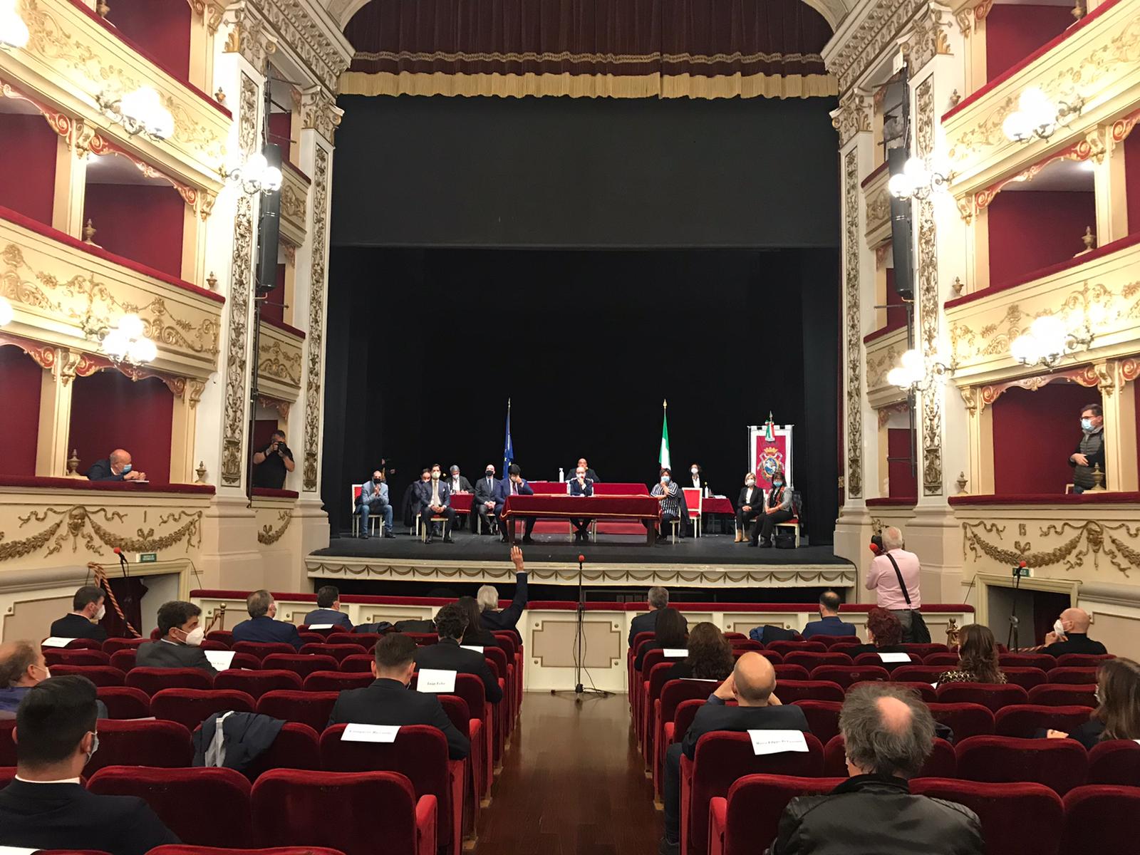 “Io avevo un sogno, quello di un cittadino con i piedi ben piantati nella sua terra che vuole vederla risorgere e rifiorire – ha detto il sindaco Diego Ferrara nel suo intervento all’Assise – Siamo già al lavoro, saremo inclusivi, presenti, vicini alle fasce più deboli, saremo la voce dei cittadini e il loro braccio operativo. Sono felice che la prima seduta si svolga dentro questo teatro che è un pezzo della nostra storia culturale”.