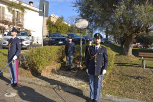 Durante la cerimonia, a cui hanno partecipato le autorità civili e militari della provincia, vi è stata la deposizione di un omaggio floreale da parte del Vice Prefetto Vicario di Teramo dott. Alberto Di Gaetano, alla presenza del Vicario del Questore dott. Alessandro Di Blasio, e un momento di preghiera, officiata da Don Cristian Cavacchioli, delegato dal Vescovo della diocesi di Teramo – Atri, che ha concluso la cerimonia con la benedizione.