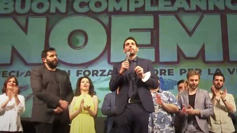 Tantissimi amici si sono ritrovati ieri sera a Chieti per festeggiare Noemi con un evento a sorpresa organizzato da Uao Spettacoli e Progetto Noemi, in collaborazione con Kiwanis Club Chieti Pescara ‘G. D’Annunzio’. Dopo il saluto del sindaco di Chieti Diego Ferrara i saluti tramite video di Maria Grazia Cucinotta, Dario Ballantini, Enrico Ruggeri e Paolo Ruffini, Maurizio Battista, Lino Guanciale, Fabrizio Moro e Gabriele Cirilli. Poi sul palco tantissimi volti noti tra i quali, Federico Perrotta, Valentina Olla, Dado e Chiara Tarquini. Negli anni la Onlus fondata e presieduta da Andrea Sciarretta, papà di Noemi, ha divulgato e sostenuto le esigenze dei ‘caregiver’, ha contribuito all’istituzione di due posti di terapia sub-intensiva pediatrica nella divisione di Pediatria dell’ospedale di Pescara, ha raccolto fondi per l’installazione di un ascensore per anziani e disabili nella chiesa di Santa Maria Maggiore a Guardiagrele.