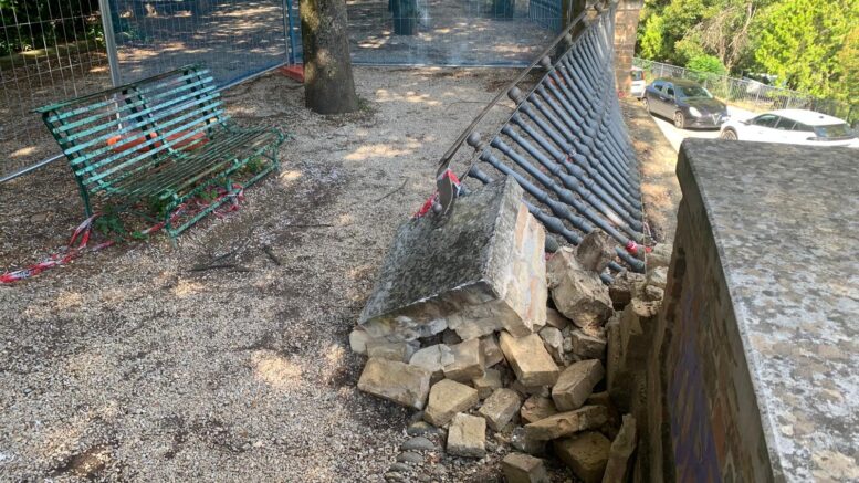 Ancora vandali in azione alla villa comunale di Chieti. Ignoti hanno spaccato un muretto di mattoni e piegato la ringhiera di ghisa
