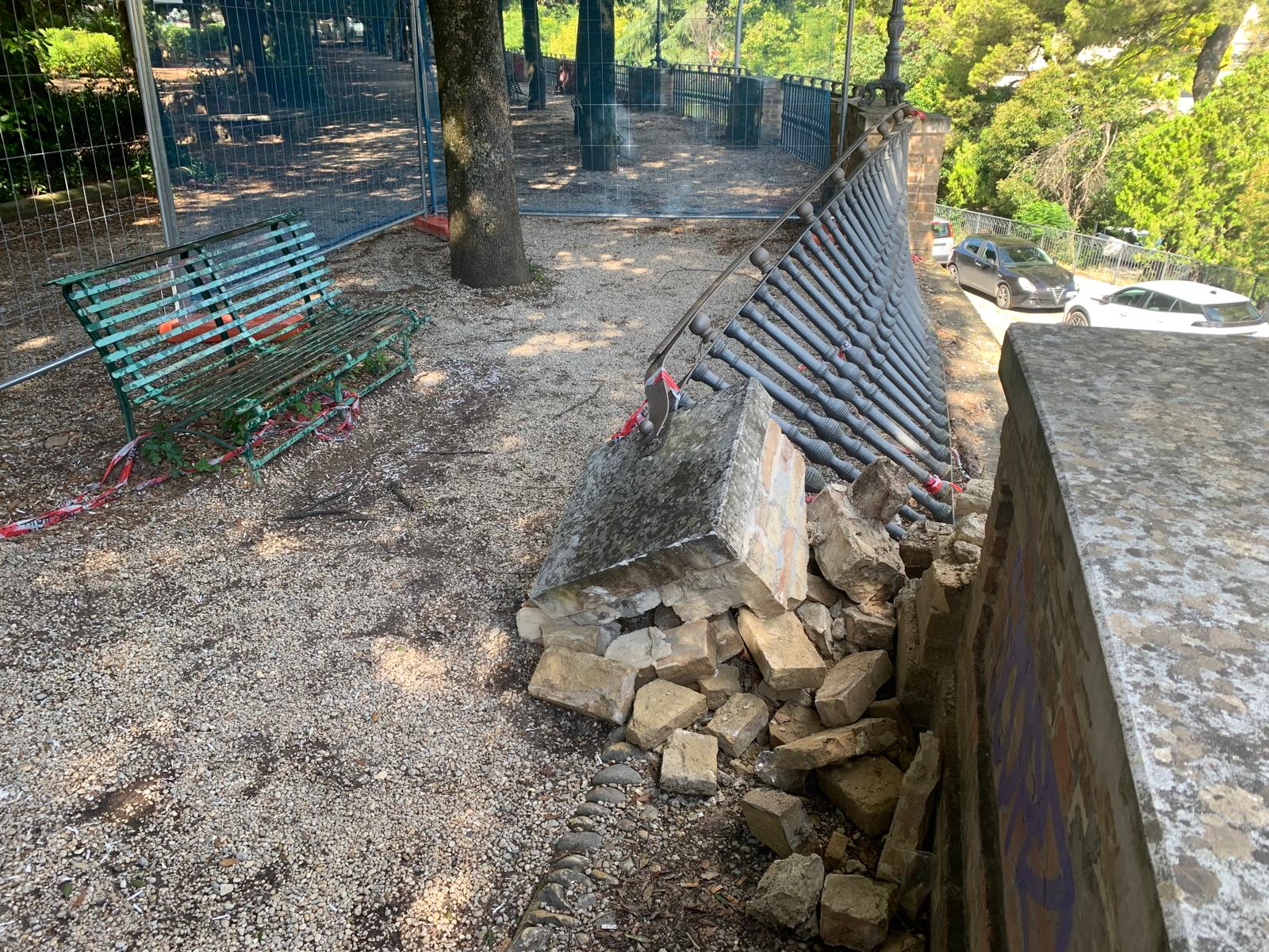 Ancora vandali in azione alla villa comunale di Chieti. Ignoti hanno spaccato un muretto di mattoni e piegato la ringhiera di ghisa