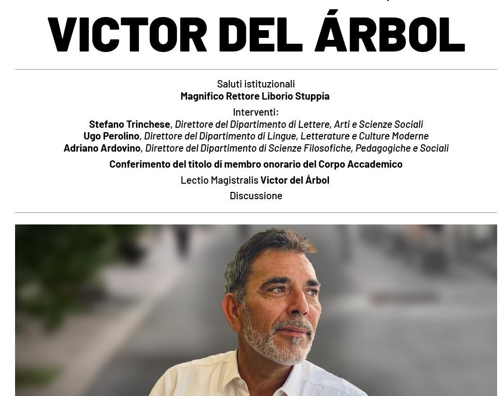 Sarà quindi il Rettore Stuppia a investire Victor del Arbol del titolo di Membro onorario del Corpo accademico dell’Università degli Studi Gabriele d’Annunzio Chieti-Pescara. La cerimonia si chiuderà con la lectio magistralis dell’insignito.