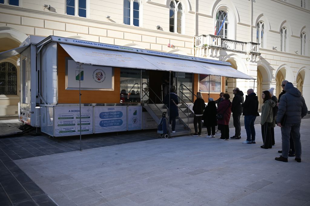 Tappa a Chieti del camper della Asl per un nuovo ciclo di screening gratuiti. Oggi in visita il presidente della Regione Abruzzo Marco Marsilio