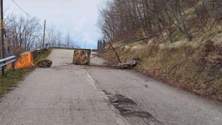 A causa di massi caduti sulla carreggiata, la strada provinciale 212, nel Chietino, è temporaneamente chiusa al traffico veicolare