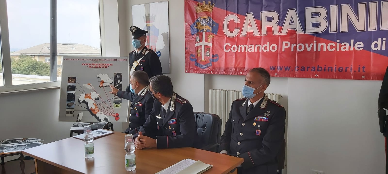Una struttura organizzata con sede in Abruzzo, in particolare tra Francavilla al Mare, Pescara e Comuni limitrofi. In carcere sono finiti Gianluca Baldassarre, 49 anni residente a Chieti, Gjysho Bana, albanese di 38 anni residente a Montesilvano, Manuel Catapano, 36 anni residente a Montesilvano, Andreas D’Onofrio si 25 anni residente a Città S.Angelo, Emiljan Guri albanese di 31 anni residente a San Benedetto del Tronto, Luca Nesci, 31 anni residente a Spoltore, Bujar Perlica, 49 anni, albanese residente a Montesilvano, Edmond Roci, albanese di 45 anni residente a Montesilvano, Aquilino Spinelli, 32 anni residente a Città S. Angelo, Brikeli Ziu, 35 anni albanese residente a Gabicce Mare, Miklovan Ziu, albanese di 42 anni residente a Montesilvano, Armand Veliu, albanese di 34 anni arrestato a Milano. L’indagine, coordinata dal Direzione Distrettuale Antimafia di L’Aquila che ha chiesto e ottenuto dal Gip le misure cautelari, è stata illustrata questa mattina a Chieti nel corso di una conferenza stampa dal comandante provinciale dei carabinieri, colonnello Alceo Greco, dal comandante del reparto operativo colonnello Pietro D’Imperio e dal comandante del nucleo investigativo, il capitano Placido Abbatantuoni. Iniziata a settembre del 2019, l’inchiesta prende il nome dal rinvenimento di un chilo e mezzo si eroina occultato sulle sponde del fiume Alento a Francavilla al Mare, ed ha portato all’arresto in flagranza di 19 persone per spaccio di stupefacenti e al sequestro di circa 60 chilogrammi di stupefacente fra cocaina ed eroina.
