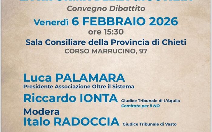 L’associazione Professione Italia – sezione di Chieti organizza un incontro pubblico dedicato alla riforma della giustizia, tema centrale del dibattito nazionale in vista del prossimo referendum