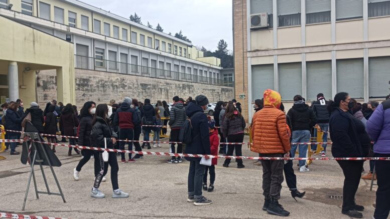 In tanti all’istituto Pomilio e all’Itis Di Savoia per lo screening del Comune di Chieti. Oggi e domani, dalle ore 8 alle 20 (orario continuato), screening agli studenti dai 6 anni in su e al personale delle scuole. Il sindaco, Diego Ferrara, valuta un’eventuale proroga del rientro in classe.