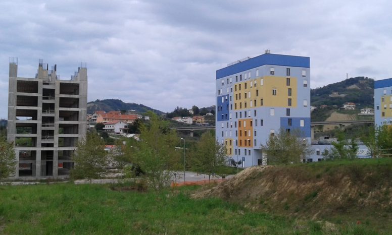 Lo scheletro di una palazzina di nuova costruzione fa bella mostra di se a pochi passi dal Campus dell’Università “G. d’Annunzio” a Chieti.