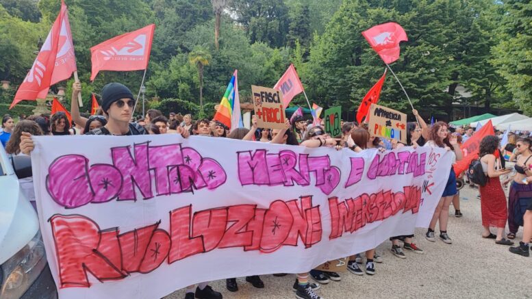 “Siamo tutti parte lesa per ogni donna stuprata uccisa e offesa” uno degli slogan o “Siamo tutte antifasciste”. Fra le bandiere quella dell’Udu, l’Unione degli studenti, e le bandiere della pace.