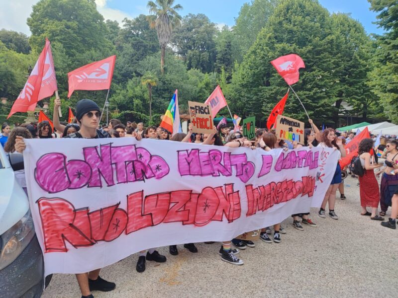 “Siamo tutti parte lesa per ogni donna stuprata uccisa e offesa” uno degli slogan o “Siamo tutte antifasciste”. Fra le bandiere quella dell’Udu, l’Unione degli studenti, e le bandiere della pace.