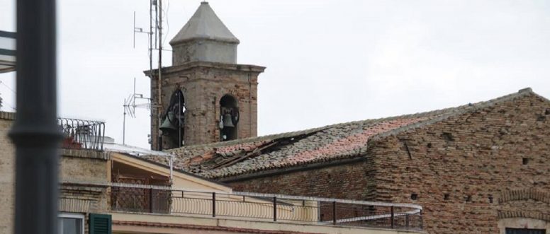 Ieri pomeriggio, 24 gennaio, infatti, le travi hanno ceduto facendo precipitare le tegole e creando un buco nella porzione ovest dello spiovente visibile da via Adriatica che si affaccia sul golfo di Vasto.