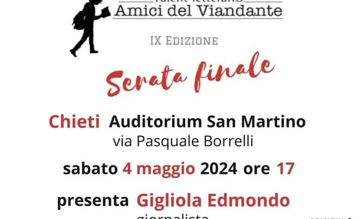 Si terrà sabato 4 maggio, alle ore 17. 30, nell’Auditorium San Martino a Chieti scalo, la finale del IX talent letterario ‘Amici del Viandante’