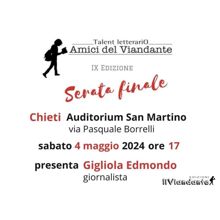 Si terrà sabato 4 maggio, alle ore 17. 30, nell’Auditorium San Martino a Chieti scalo, la finale del IX talent letterario ‘Amici del Viandante’