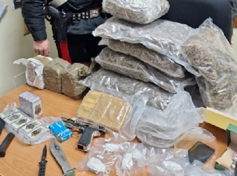 Grazie ai controlli dei militari della Sezione Operativa è stato individuato il giovane, già noto alle forze dell’ordine, accompagnato con un altro ragazzo più giovane, in via Papa Giovanni Paolo II, nella zona del Villaggio Mediterraneo, il quale è stato notato con fare sospetto a bordo di una Audi nera di grossa cilindrata. I due sono stati subito fermati per un controllo. Durante gli accertamenti, i militari hanno rinvenuto addosso al 32enne un coltello a serramanico e quindi è stata perquisita anche la sua auto all’interno della quale è stato ritrovato un marsupio al cui interno si scopriva un ulteriore coltello e circa 50 grammi di hashish e oltre 280 euro in banconote di vario taglio, ritenute provento dello spaccio.