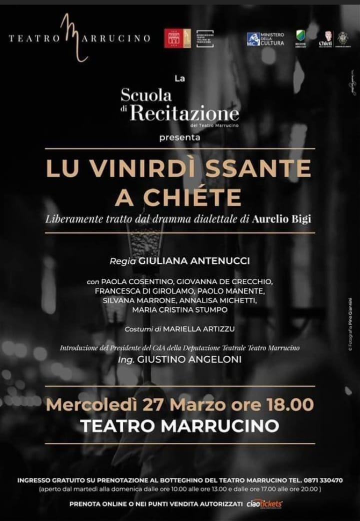 È andato in scena ieri al teatro Marrucino di Chieti lo spettacolo “Lu Vinirdì Ssante a Chiéte”, liberamente tratto dal dramma dialettale scritto da Aurelio Bigi