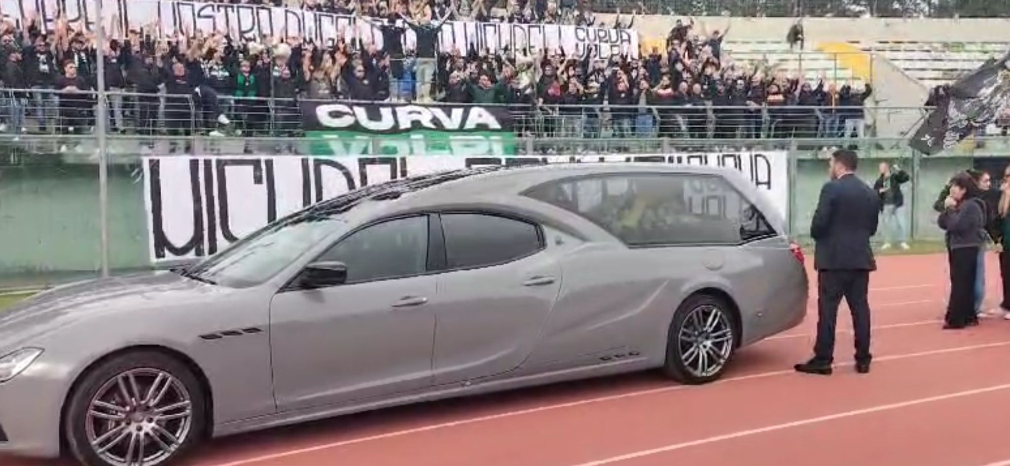 Il feretro, accompagnato dai famigliari, ha fatto il suo ingresso allo stadio Angelini, dove ad attenderlo c’erano tutti i tifosi della Curva e una folta rappresentanza della squadra, con il direttore sportivo Ciccone, il tecnico Ignoffo e diversi calciatori, tra cui Forgione e Fall.
