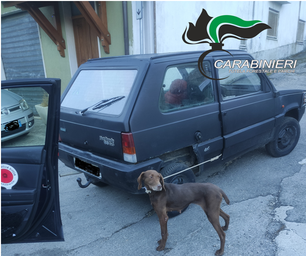 Nei giorni scorsi, militari della Stazione Carabinieri Forestale di Villa Santa Maria, a seguito di attività di indagine, sono prontamente intervenuti nell’arrestare la corsa di un’auto che trascinava un cane, risultato di proprietà del conducente, mediante una corda legata alla portiera del mezzo ed usata a mo’ di cappio al collo. Il Veterinario reperibile della ASL competente, arrivato pressoché nell’immediatezza, ha potuto verificare la regolare iscrizione all’anagrafe del cane, una femmina di razza “da ferma” generalmente utilizzata per l’attività venatoria, un discreto stato nutrizionale dello stesso, un’evidente caudotomia e lievi escoriazioni ad una zampa.